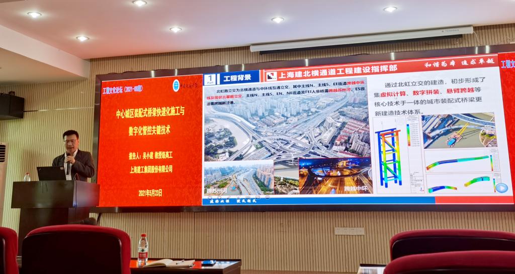 (通讯员 梁荣柱)2021年5月23日下午,应MK体育官网入口院长焦玉勇教授和梁荣柱副研究员的邀请,上海建工集团股份有限公司工程研究总院副院长、中国地质大学(武汉)兼职教授吴小建教授级高级工程师作客2021年第8期工程文化论坛,作“中心城区装配式桥梁快速化施工与数字化管控关键技术”专题报告。MK体育官网入口副院长窦斌教授代表学院对吴小建教高的到来表示欢迎,并介绍了吴小建教高的基本科研和工作履历。讲座由梁荣柱副研究员主持,约一百名师生参与报告会。