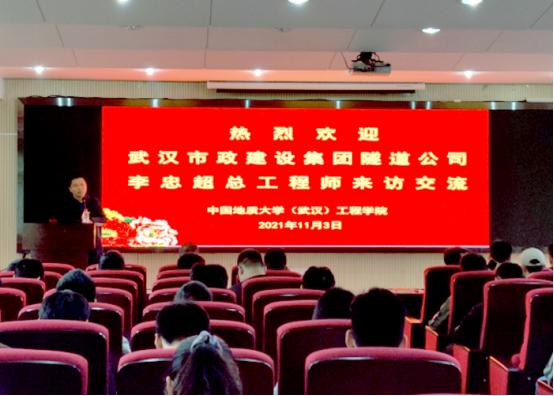 (通讯员:梁荣柱 黄静)2021年11月3日下午,武汉市政建设集团隧道公司总工程师李忠超博士应邀作客工程文化论坛。活动由吴文兵教授主持,我院梁荣柱副研究员、刘浩特任副教授、周丽珍老师,海洋学院刘鑫特任副教授及百余名学生代表聆听了此次报告。