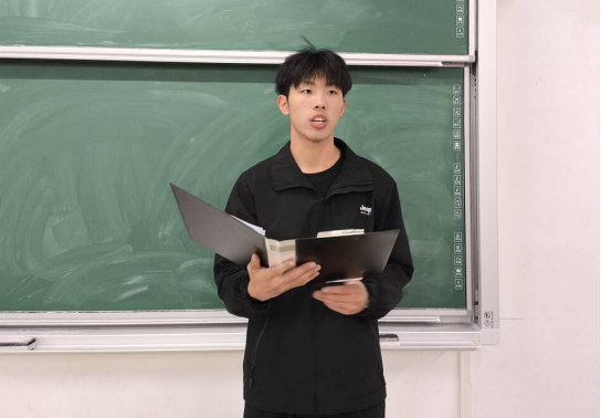 学生代表、学术部部门负责人陈锦泽同学宣读《共创优良学风倡议书》。他倡议同学们要做到“四不”“三勤”,即上课不缺勤、作业不投机、考试不作弊、学术不造假,勤于课业、勤于钻研、勤于实践,争当优良学风的传承者、践行者和维护者。