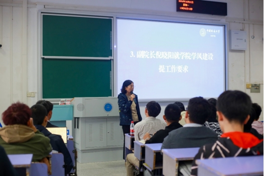 倪晓阳就学风建设工作提出要求。她指出,从近期学院开展的本科生课堂纪律督导检查工作来看,同学们基本能够高质量完成课堂学习,表现出良好的教风、班风、学风,但是也有极少数同学存在看手机、不听讲等问题。她强调,优良学风是高校人才培养工作的基本保障,各班级和各位同学要以创建“优良学风示范班”为契机,严抓班风学风,严守课堂纪律,班团委干部要以身作则、率先垂范,引领带动全班同学树立严明的学习纪律、培养良好的学习习惯、营造积极的学习氛围、展现蓬勃的精神风貌,全班同学心往一处想,劲往一处使,共建示范班级,共同成长进步。
